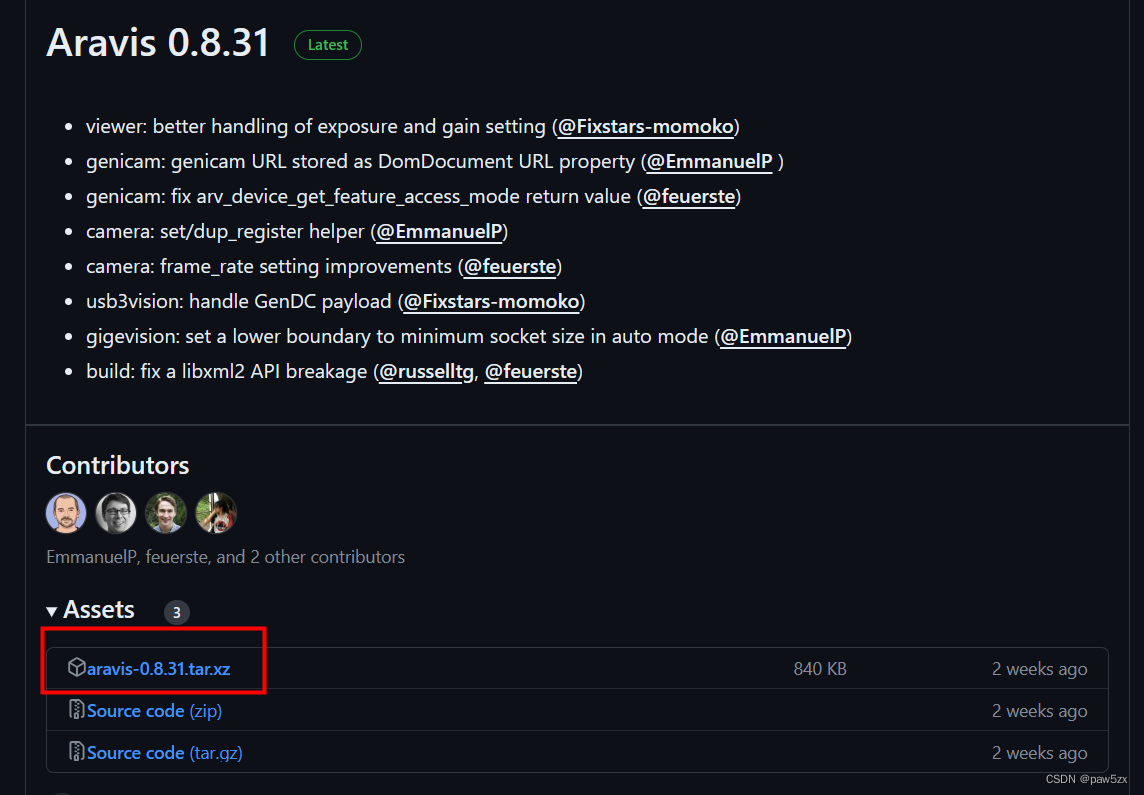 在github上找到所需的aravis的发行版本,并下载:https://github.com/AravisProject/aravis/releases