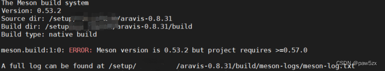 我安装的aravis版本是0.8.31,这个版本aravis的编译依赖0.57.0及以上版本的meson,而我通过apt包管理器下载的meson版本为0.53.2,不满足需求。因此要对meson进行升级操作: